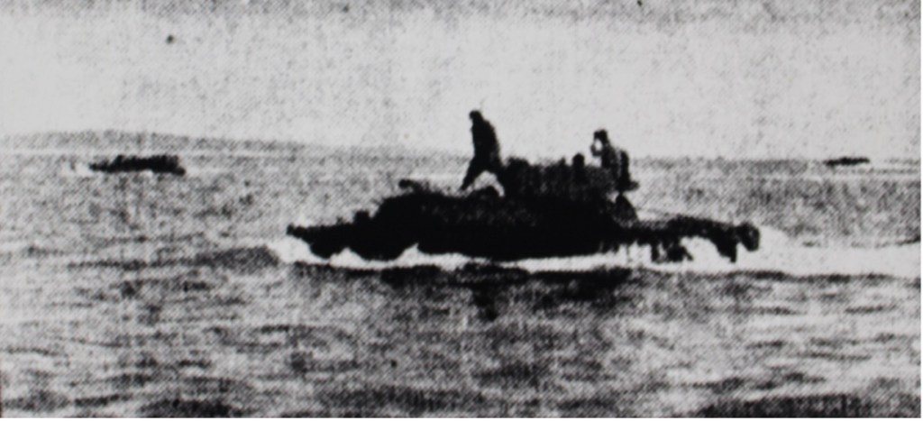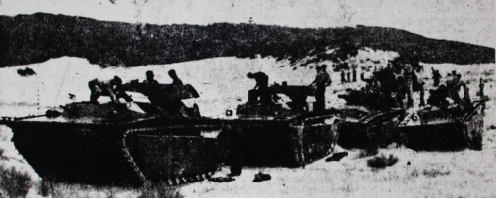 Tanks and “ducks” just before making their landing [Newcastle Sun, 20 March 1952]