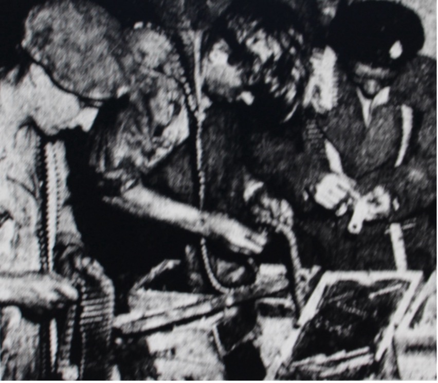 Waiting for the landing, Corporal N. Julian, Corporal H. Stewart and Cadet G. Fleming, prepare ammunition belts [Newcastle Morning Herald and Miners’ Advocate, 21 March 1952]