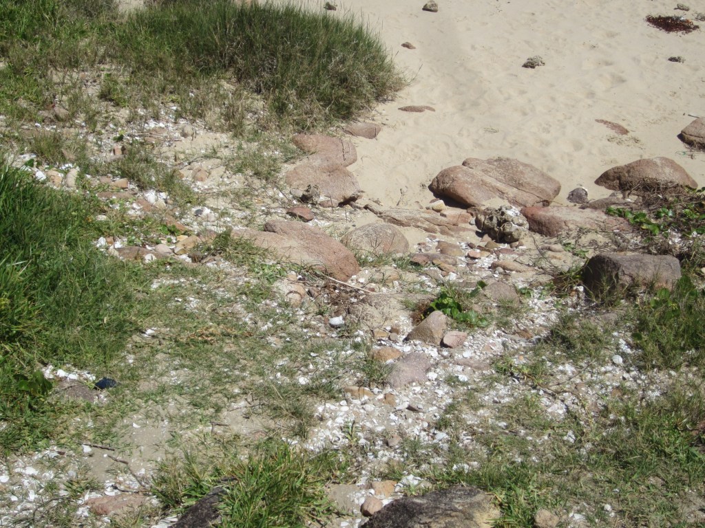 Shell middens are found in sheltered spots in sand dunes, on rock platforms and in coastal scrub and woodland areas.