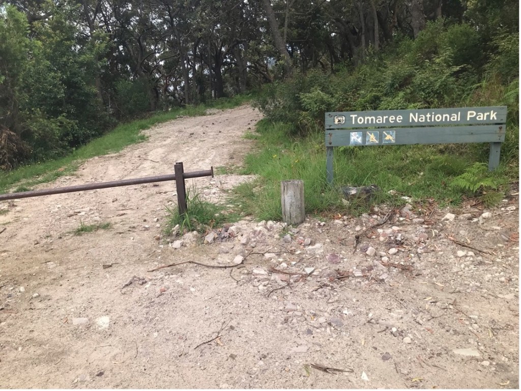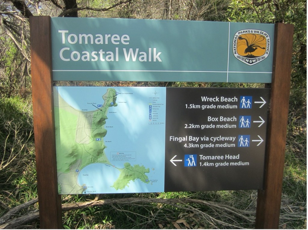Sign showing the route of the Tomaree Coastal Walk to Wreck Beach on which middens are located [Author Photo – 2023]