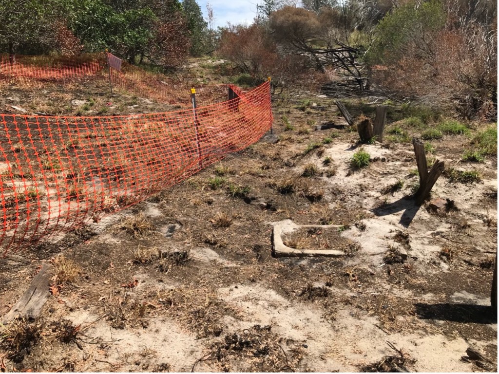 The following two photos show an area on the Mountain marked for asbestos removal which was once the site of an earlier building.