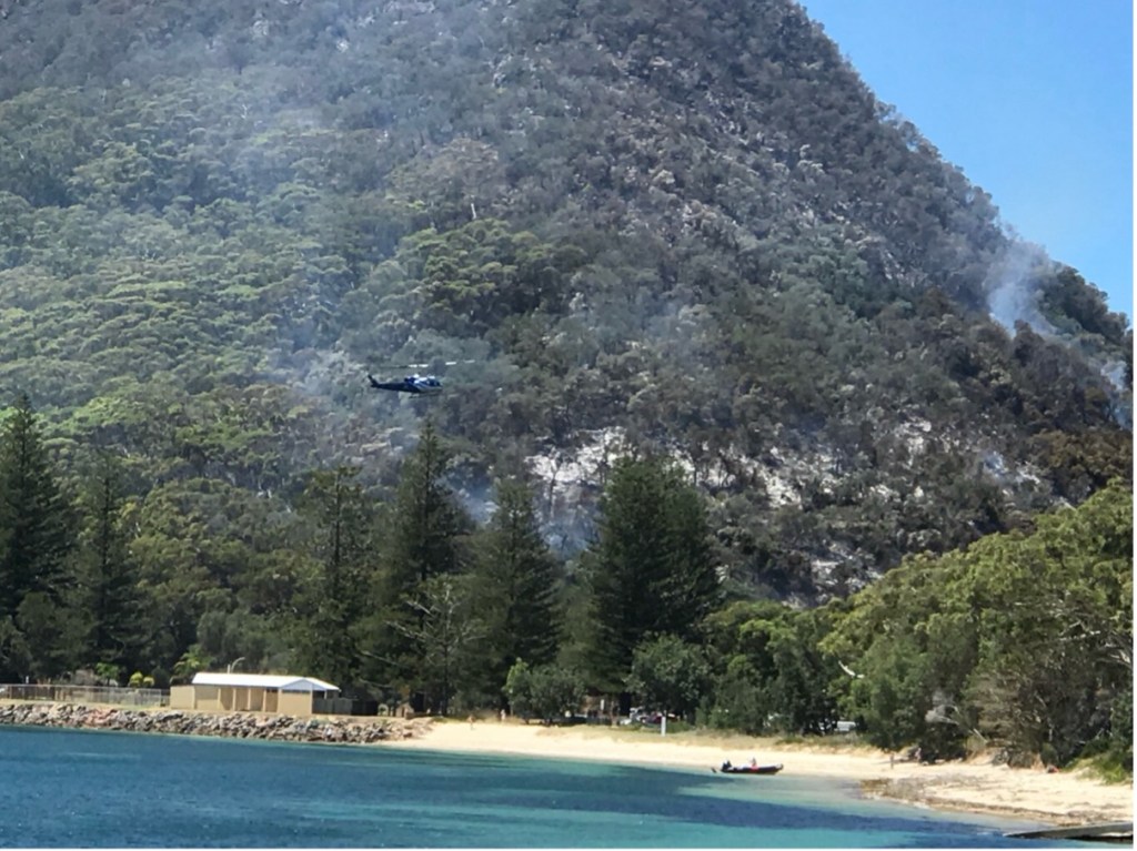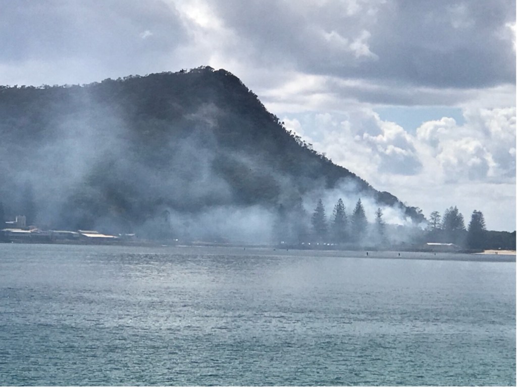 Around 5.30 p.m. on 6 February 2018, Mount Tomaree, which forms the southern headland of Port Stephens, caught fire. The view of the Mountain at night was likened to an ‘erupting volcano’.
