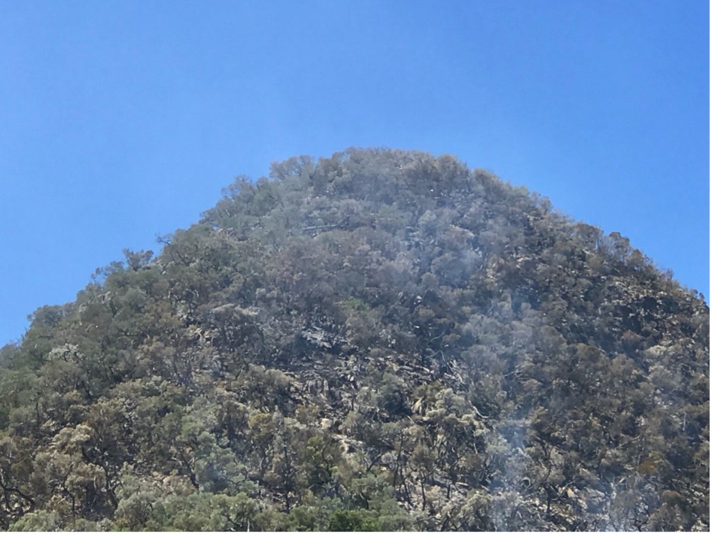 The following photos show the Mountain on fire in 2018, its aftermath and new shoots of vegetation that had arisen from the ashes.