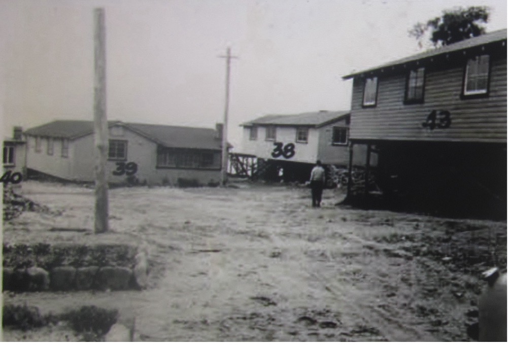 View of buildings 38, 39, 40, 43 on the upper road – 1950 when the site housed the Tomaree Convalescent Hostel [Museums of History NSW]