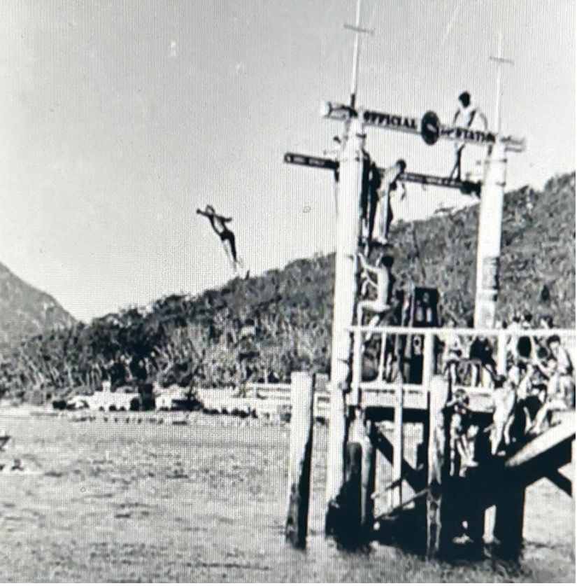 Former Big Game Fishing Weighing Station at Shoal Bay near the Clubhouse (circa 1950’s). Tomaree Lodge in the background