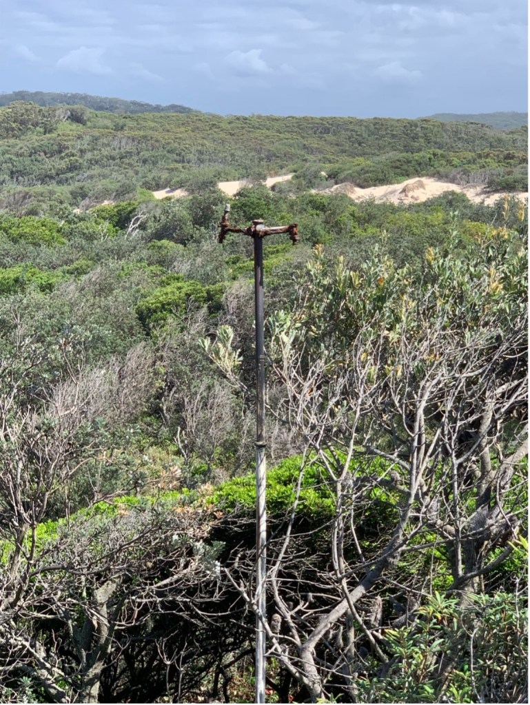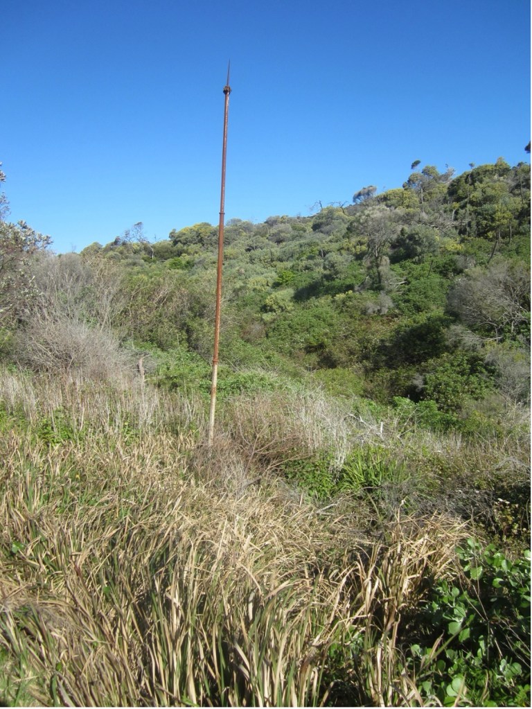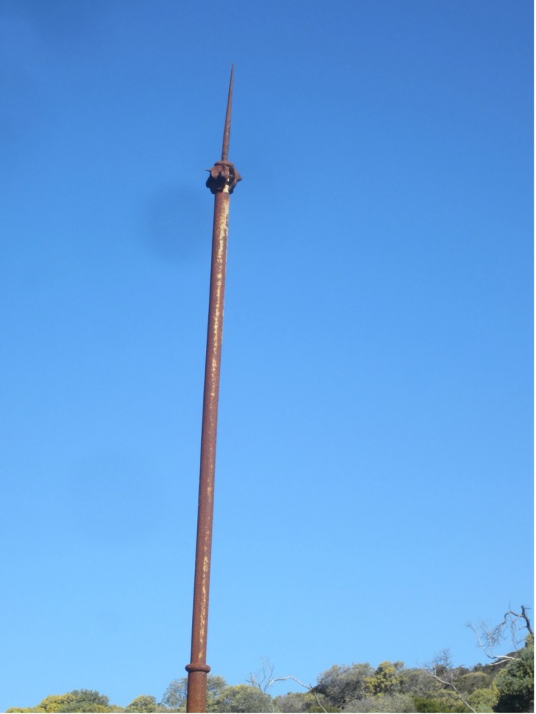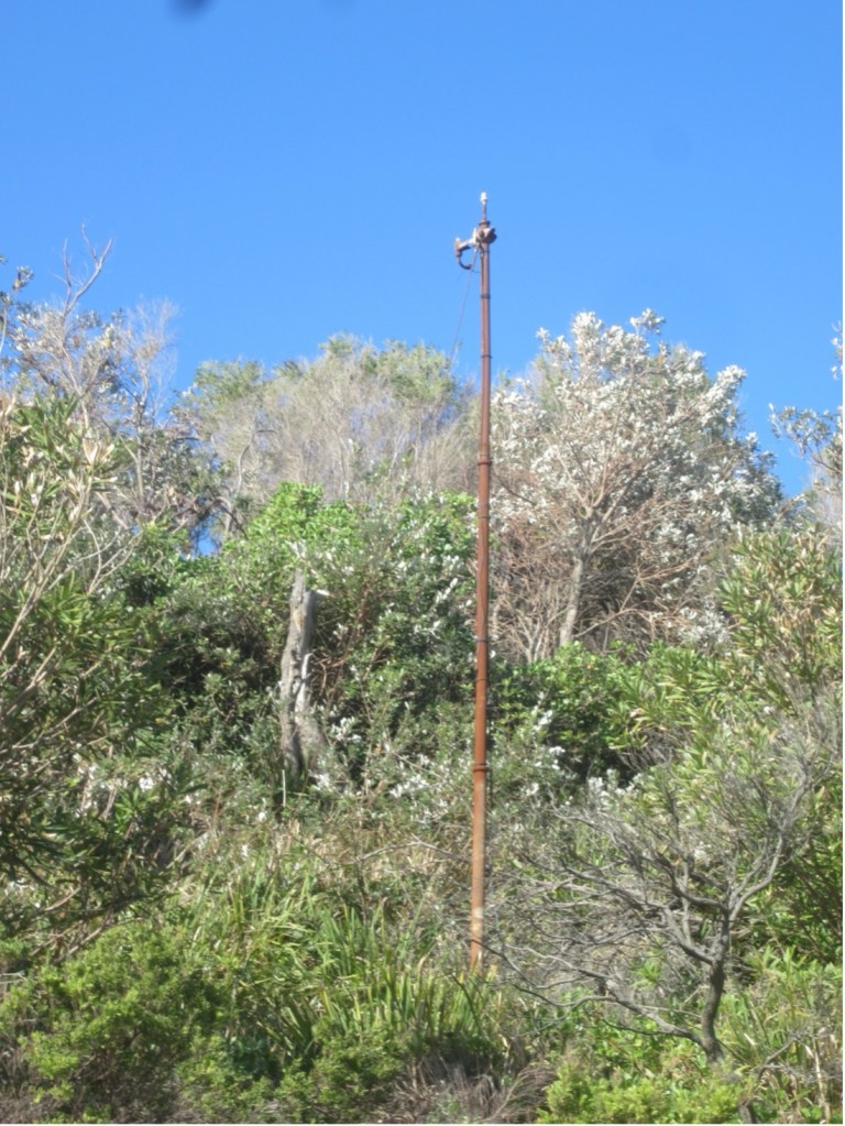 This pole may have been part of the military communication network on the site of the former Tomaree Battey in the Second World War.