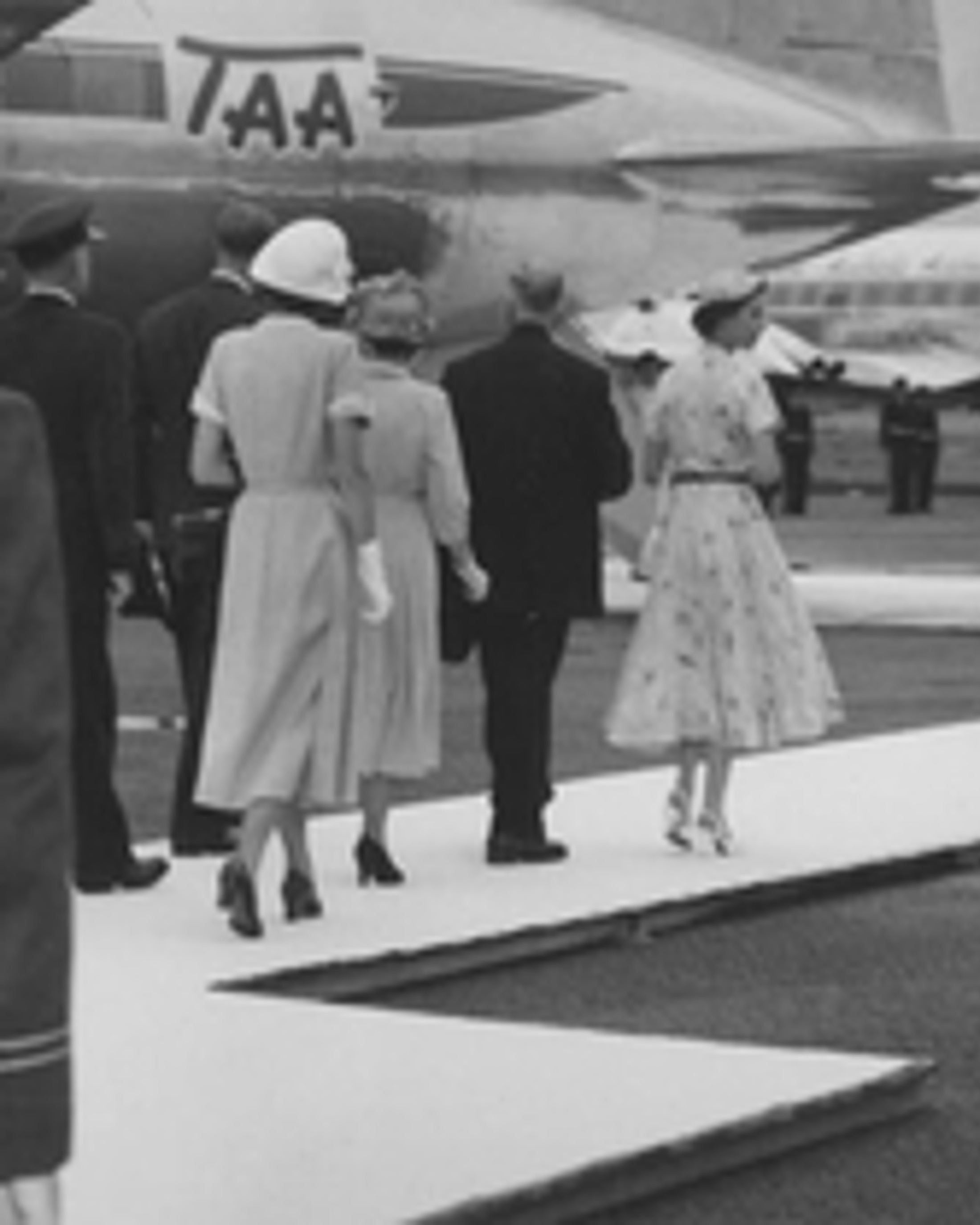 Royal Party walking to their plane for their flight to Evans Head [Newcastle City Library]