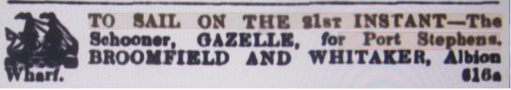 Gazelle Schooner [Sydney Morning Herald, 13 July 1861]