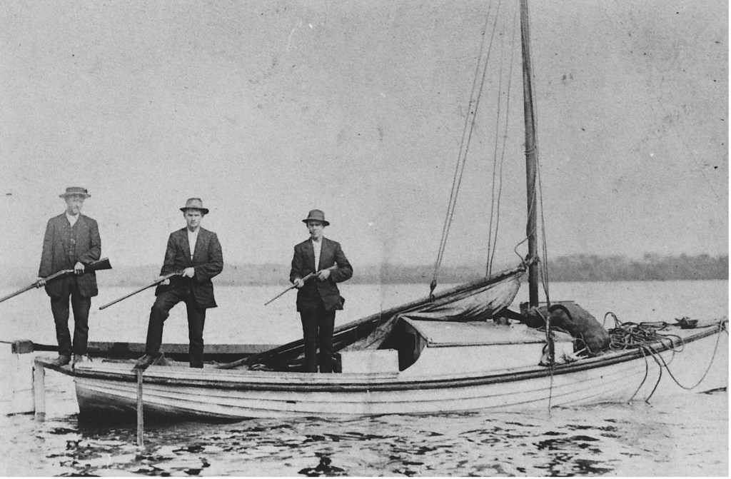 The Korsmans on the water for a shooting excursion – 1905 aboard the ‘Greyhound’ which was brought to Tea Gardens by Diver Duncan