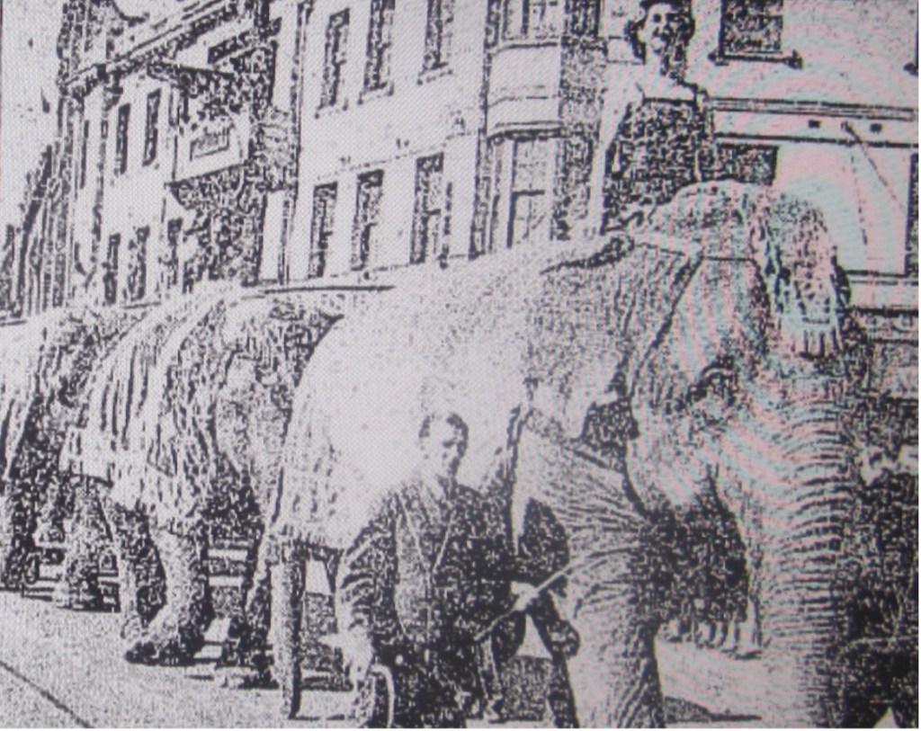 Elephants in Hunter Street, Newcastle in the Jubilee Parade [Newcastle Morning Herald and Miners’ Advocate, 10 May, 1951]