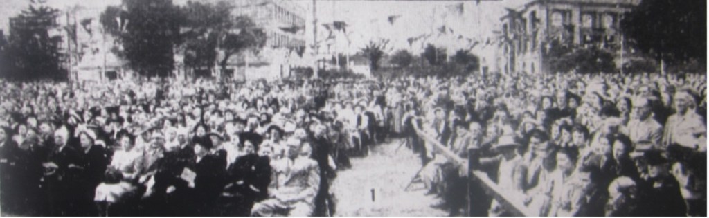 Scene at Civic Park when the Governor, Lieut.-General Sir John Northcott, gave the opening address at the Jubilee Thanksgiving service. [Newcastle Sun, 16 April 1951]