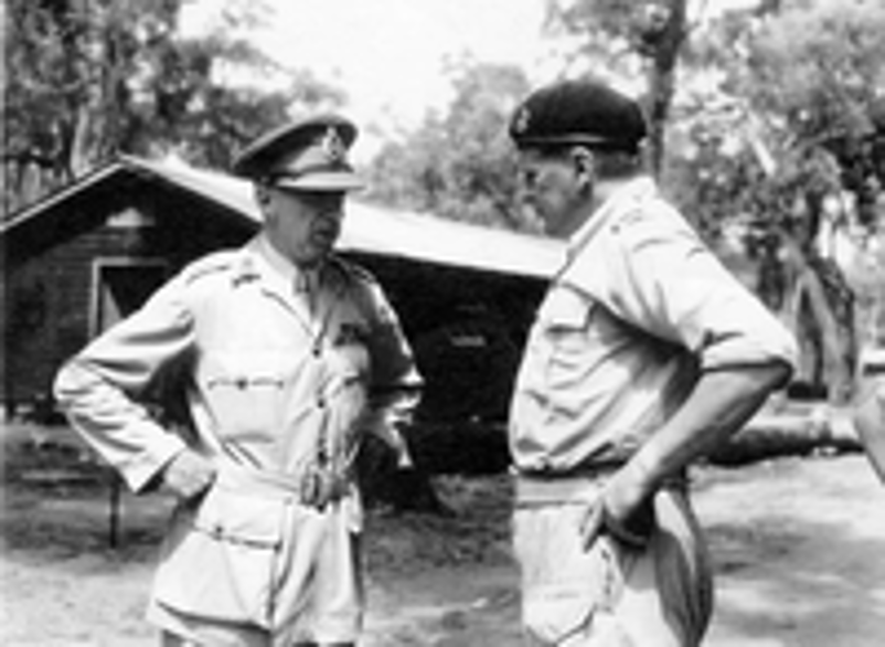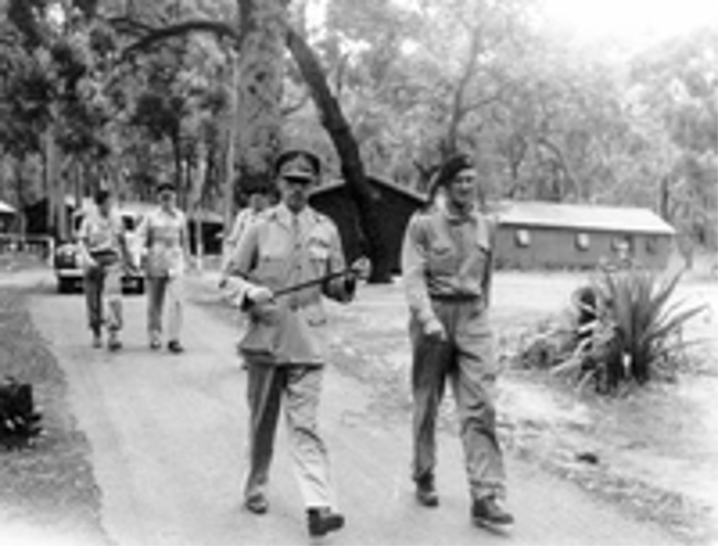 Vice Chief of the General Staff Liuetenant General Sydney F. Rowell on a tracked amphibious lending vehicle at Gan Gan, 3 March 1949