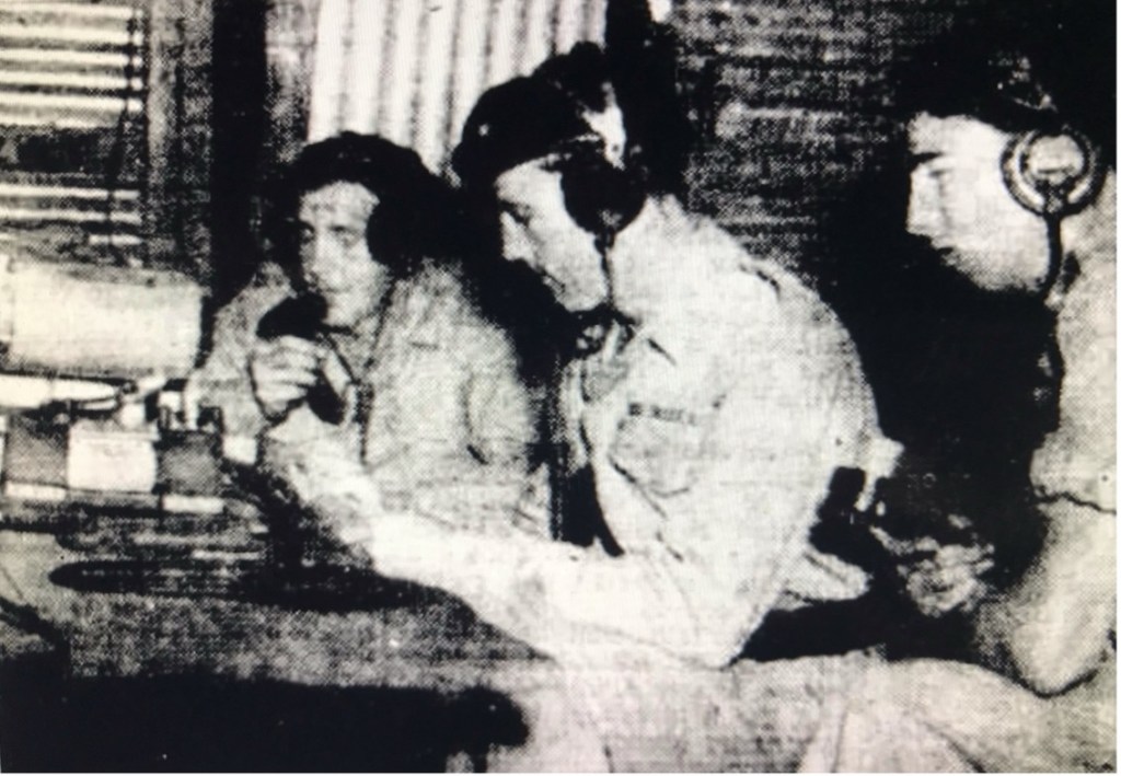 Headquarters wireless link with the tanks, L./CpL J. Shields, Lieut. G. Beveridge, Tpr. M. Robards
