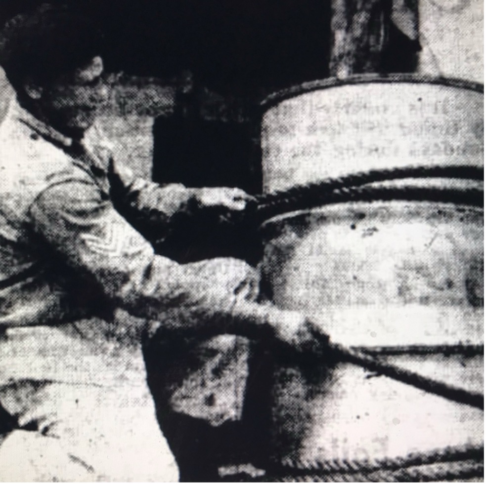 Sergeant H. H. James, unlashing a drum of high octane fuel when L.V.T.4’s arrived at Gan Gan Camp for land and sea. [Newcastle Sun, 5 February 1951, page 3]