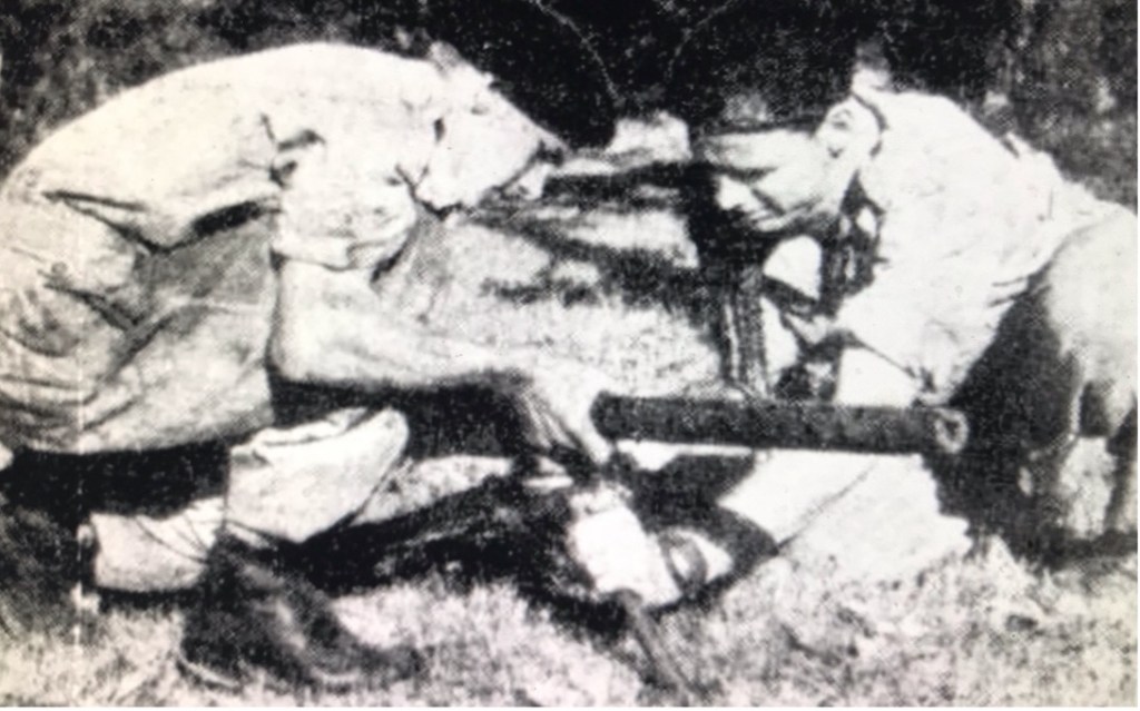 In its harassing tactics, the “enemy” laid booby-traps and mined 18 sections of the exercise area, using dummy mines which exploded with a bang and issued plenty of smoke, but caused no damage. The “enemy,” all highly-trained personnel, used live ammunition in their rifles and Bren-gun to add a realistic touch. They fired wide to avoid possibility of accident. Its snipers were so well camouflaged in the scrub that a “Newcastle Morning Herald” photographer, directed to their position, failed to spot them for five minutes.