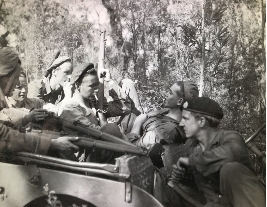 We waited about half an hour. Then a jeep appeared from a track behind us. It was the enemy, led by the company’s Second-in-Command (Captain E. L. Stooke). Far from being worried by the enemy’s appearance, everyone gathered around to ask who was winning the battle. The enemy called a temporary truce, told us it was winning, and kindly led us along the mined tracks to the rendezvous. After leaving the truck, it raced away into the bush to ambush an infantry patrol in a reasonably realistic atmosphere of cracking rifles, exploding landmines and fireworks hand grenades. …..