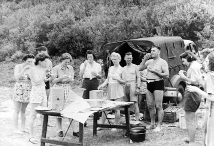 In February 1945, in the latter stages of the Second World War, military personnel from the Newcastle Detachment of the NSW Anti-Aircraft and Coast Artillery Signals Unit and the Australian Women’s Army Service (AWAS) held a picnic at One Mile Beach, near Anna Bay, Port Stephens.