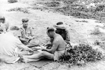 Lieutenant Colonel C. L. Southwell (third from left), Commanding Officer of the NSW Anti Aircraft and Coast Artillery Signals Unit, who was based at Middle Head, Sydne), with other members of the Units, eating a slice of watermelon.