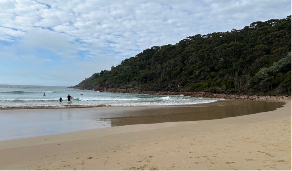 Southern end of One Mile Beach where the military picnic took place. [Author photo – June 2025]