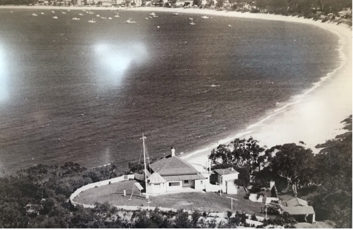 Aerial view of the Inner Lighthouse precinct with Shoal Bay in the background – circa 1960.