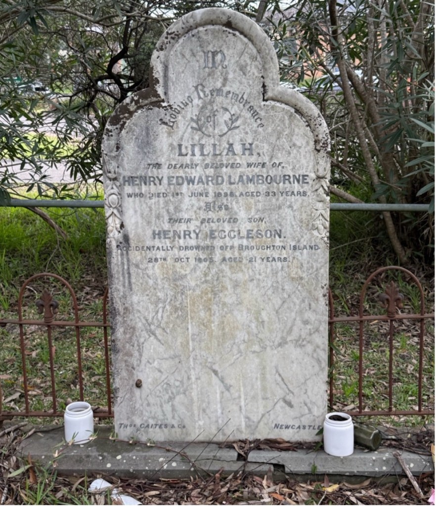 Gravestone of Lillah Lambourne at Nelson Bay Cemetery [Author photo]