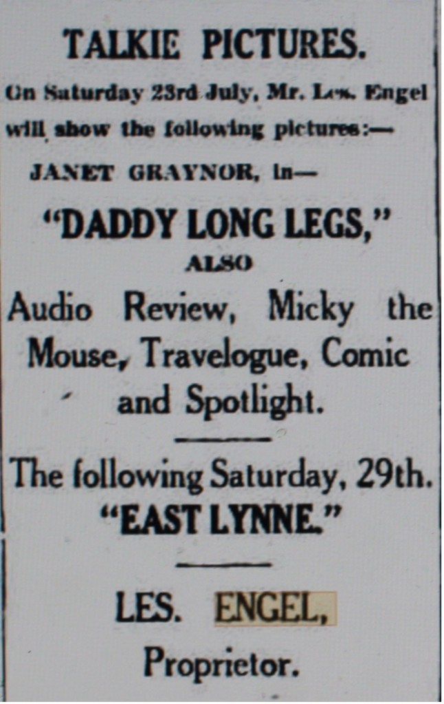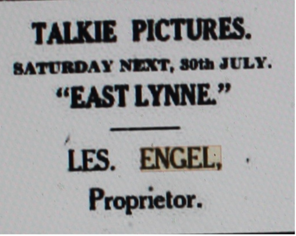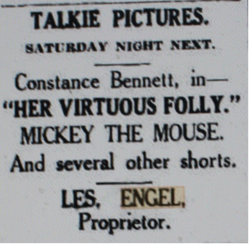 The Dungog Chronicle of 10 July 1931, page 4, reported that Les Engel provided one of several free film nights in July 1931: