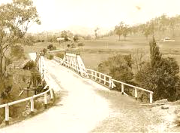 Here the jumbucks were washed after being shorn. But when the keeping of sheep was discontinued, the dam was blown up by order of the Road Superintendent for the waters caused serious erosion of the banks. Just below the old dam is a crossing place which has been used for years for that purpose, but now a splendidly solid bridge spans the river. From the structure may be obtained enchanting views both up and down the river.