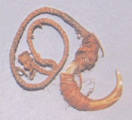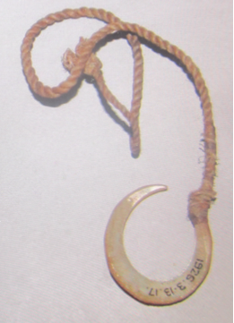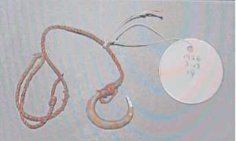 They include four fishhooks (Oc1926,0313.16-19), three fishing spears (Oc1926,0313.34-36) and a shield (Oc1926,0313.37) as collected from the Worimi at Port Stephens.