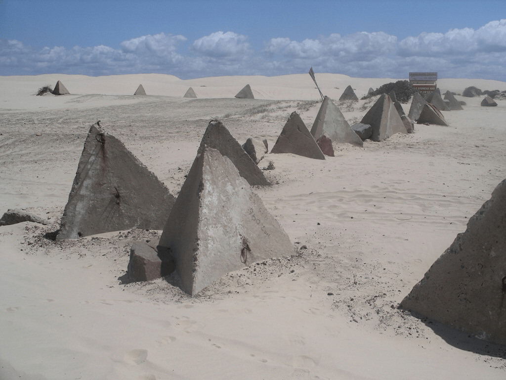 Tank traps along Stockton Beach, regularly exposed after heavy storms