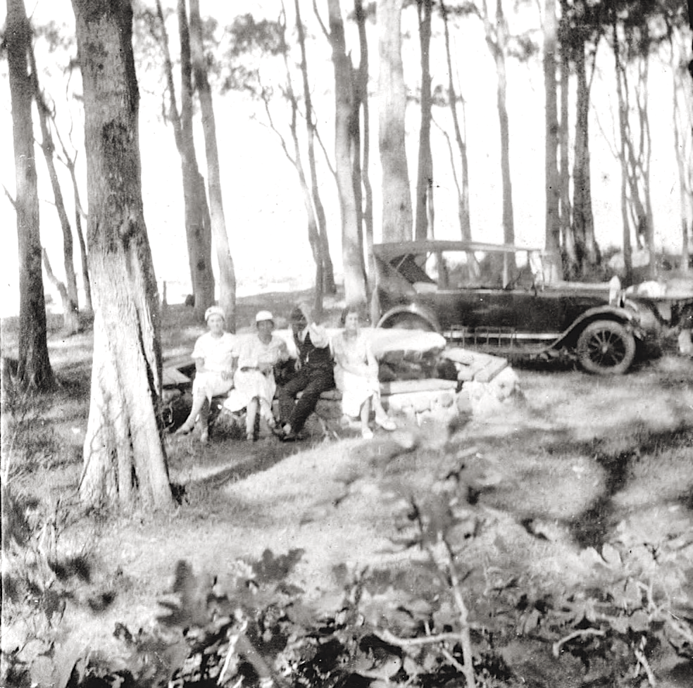 Entrance Gate to Tanilba Bay Estate – 1935 [Newcastle University Library] The same people and car were those featured at the picnic table at Sunset Park