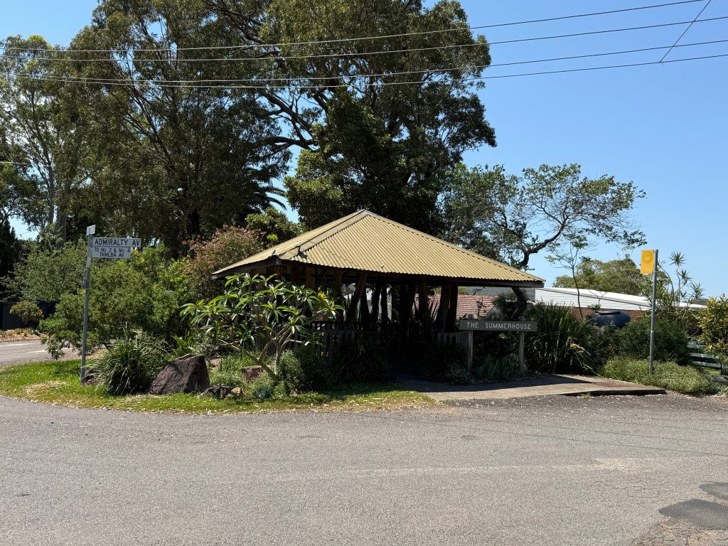 Summer House (at the eastern corner of Caswell Crescent and Admiralty Avenue, Tanilba Bay) now serving as a bus stop shelter [Author photo – 2025]