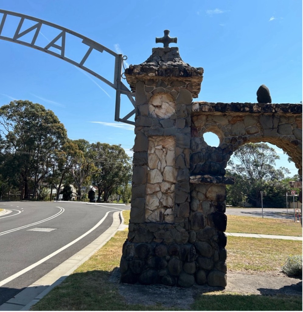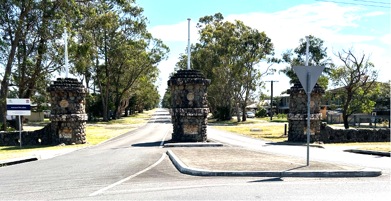 Land (Entrance) Gate to Tanilba Bay, off roundabout on Lemon Tree Passage Road [Author photo, 2025]