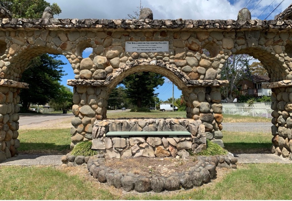 One of the bollards from H.M.A.S. Sydney as placed on the Centenary Gate [Author photo – 2025]
