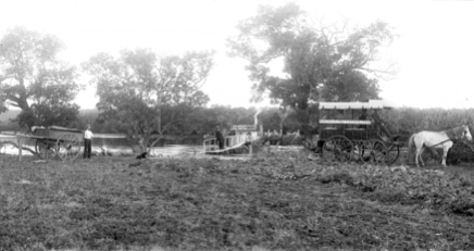 A Matthewson coach from Stockton delivering travellers to a steam launch at the Salt Ash wharf, on Tilligerry Creek – 1907. The sign on the side of the coach reads: ‘Newcastle Port Stephens Coach’ – Leaves Stockton Wharf Tuesday and Friday.