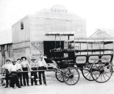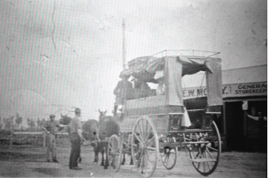 Matthewson coach at a horse change point at Williamtown General Store on the Stockton – Salt Ash route – 1906 [Dalton Family Collection – University of Newcastle Living Histories Collection]