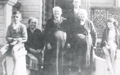 Frances (Fanny) Dalton, second from left and her mother Eliza Jane Dalton, Thomas and Mrs. Laman [Ancestry.com]