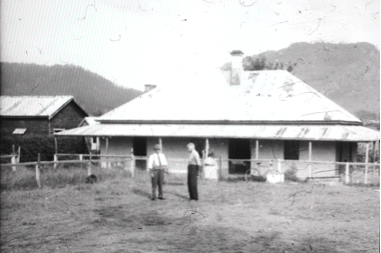 W. Dalton and Harold Matthewson outside original Gloucester House, 1950 [Dalton Family Collection – University of Newcastle Living Histories Collection]