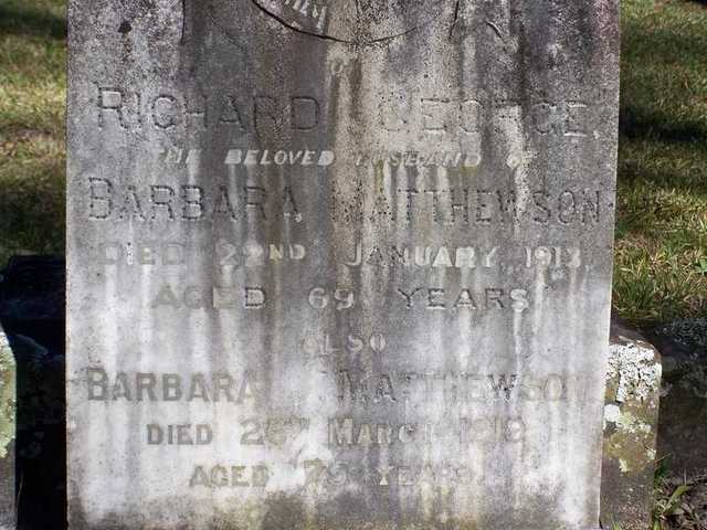 Grave of Richard George Matthewson and his wife Barbara at the Pioneer Cemetery at Raymond Terrace