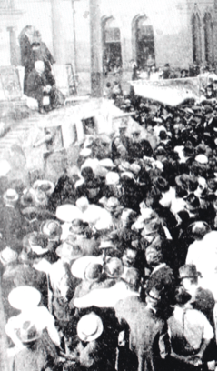 Mayor of Mosman (Ald. A. D. Walker) on the tank urging his hearers to invest in the loan [Sydney Mail – 17 April 1918]