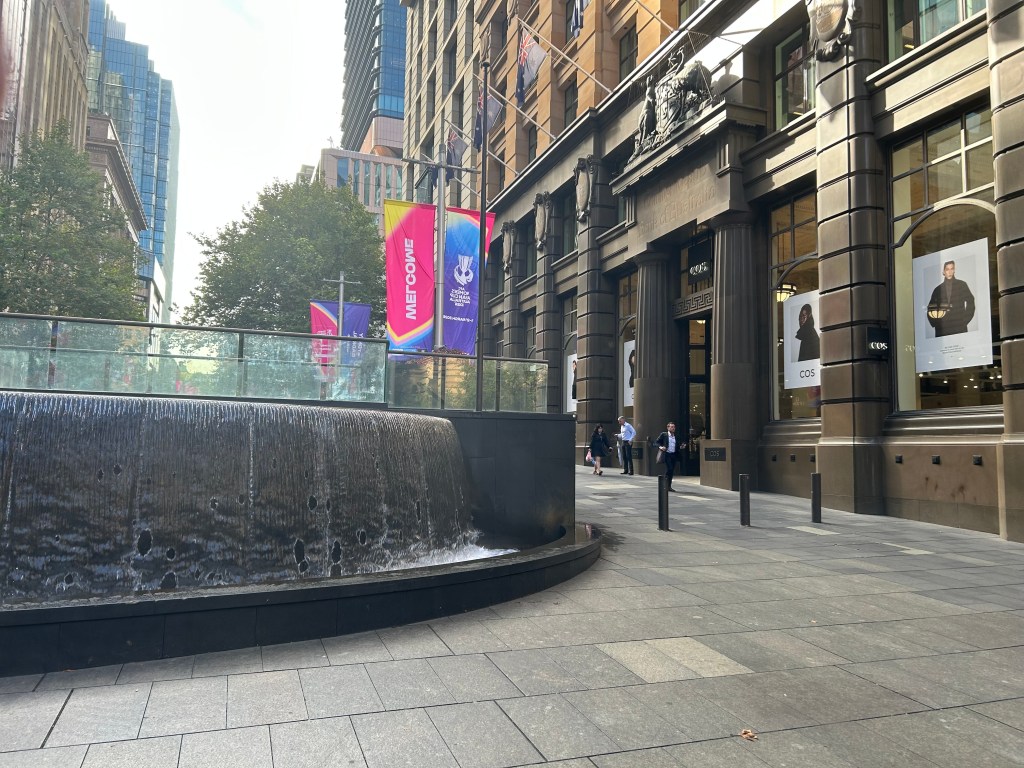 Current day view of Martin Place , Sydney outside the former Commonwealth Bank Headquarters, scene of the 1918 ceremony for the War Bonds promotion [Author Photo – March 2026]