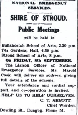 The National Emergency Services scheme commenced at Tea Gardens [Dungog Chronicle, 1 September 1939]