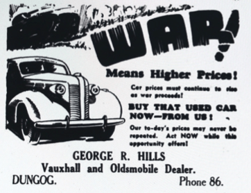 The price of motor vehicles predicted to rise as the War continues [Dungog Chronicle, 9 February 1940]