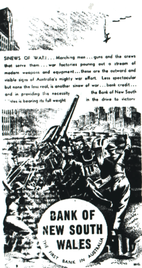 Bank of New South Wales [now Westpac] supports the war effort [Dungog Chronicle, 4 April 1941]