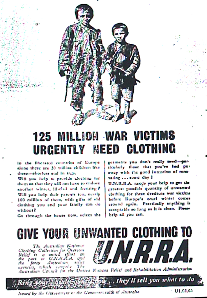 Unwanted clothing sought by the United Nations Relief and Rehabilitation Administration [Raymond Terrace Examiner and Lower Hunter and Port Stephens]