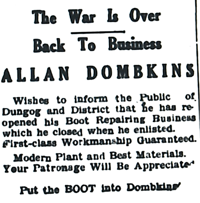 Back from the war and back into boot making for local bootmaker [Dungog Chronicle, 24 May 1946]