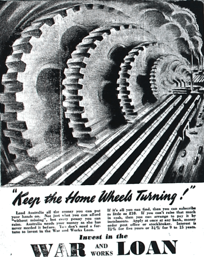 Investment in the War and Works Loan invited [Raymond Terrace Examiner and Lower Hunter and Port Stephens Advertiser, 1 May 1941]