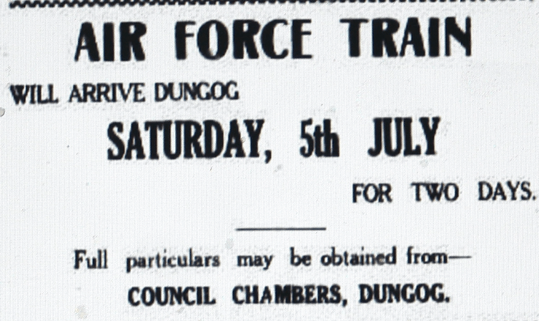 Air Force Train comprised three blue carriages. The first carriage was for the purpose of testing air crew candidates and applicants for various trade groups. The second carriage covered the requirements of medical tests and examinations [Dungog Chronicle, 27 June 1941]