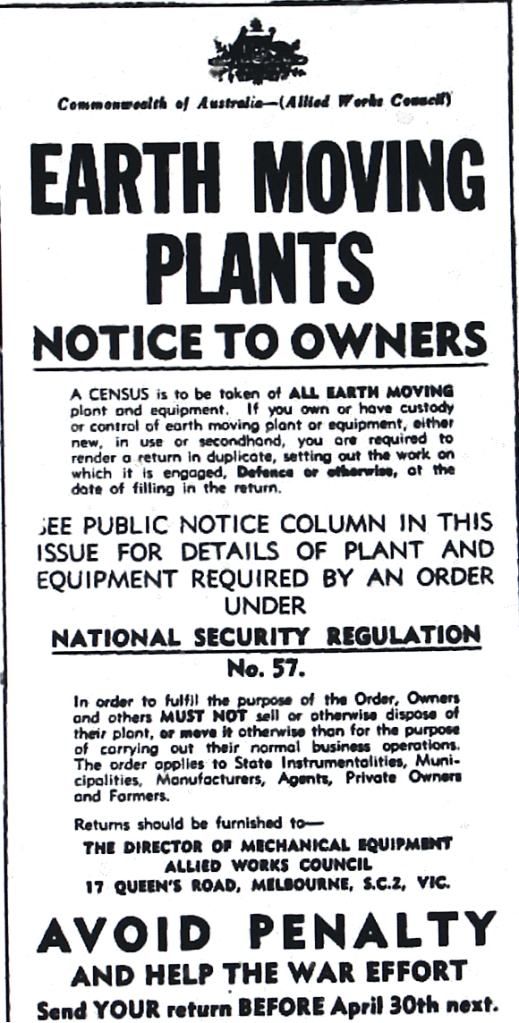Census of earth moving plants introduced [Dungog Chronicle, 24 April 1942]