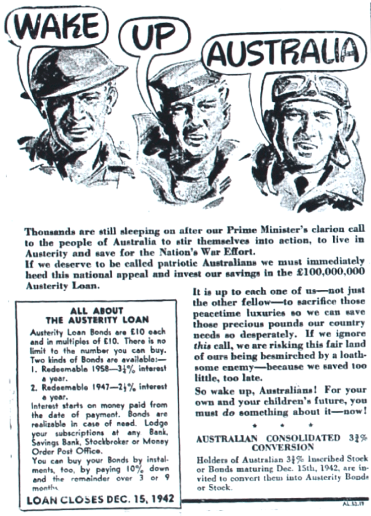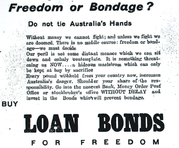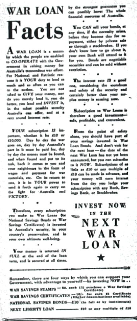 Investment in Loan Bonds invited [Raymond Terrace Examiner and Lower Hunter and Port Stephens Advertiser, 12 December 1940]