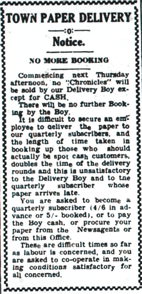 Petrol Rationing limits delivery services [Dungog Chronicle, 18 October 1940]